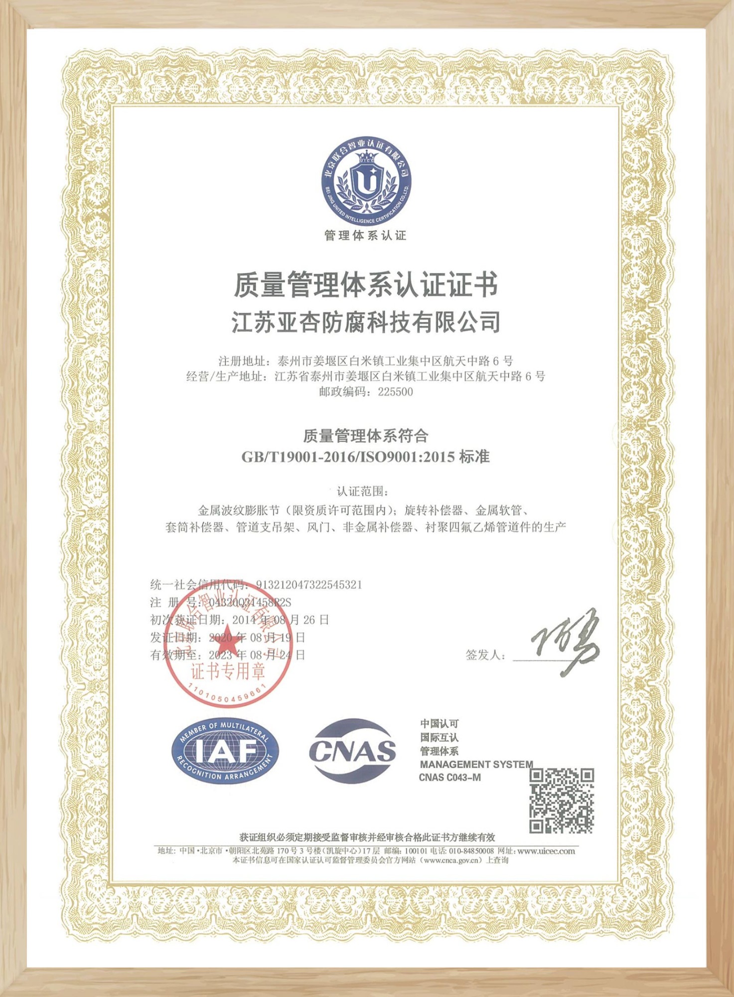 質(zhì)量管理體系認(rèn)證證書(shū)